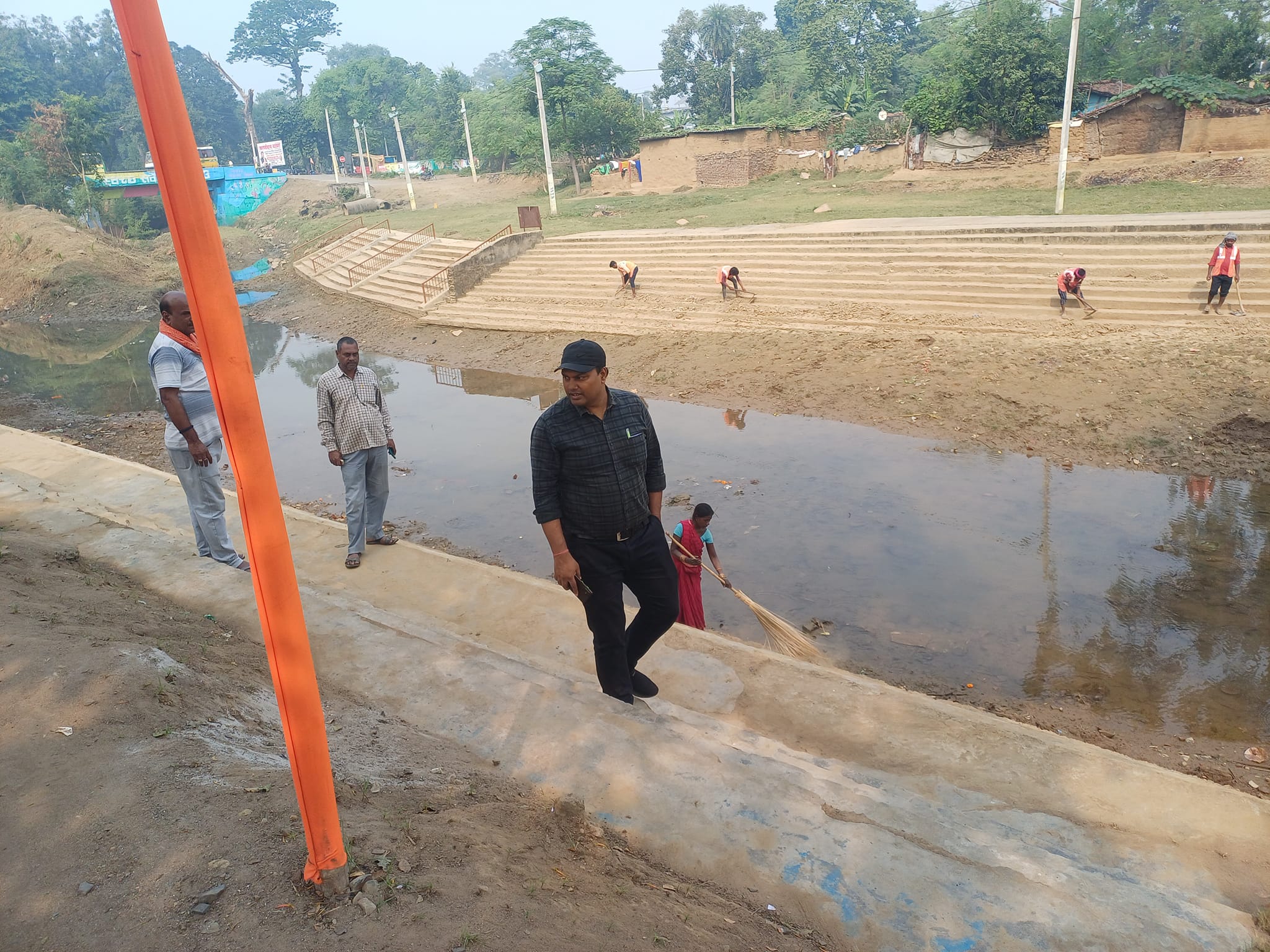 छठ घाट असपुरा का निरीक्षण करते नगर कार्यपालक पदाधिकारी,
